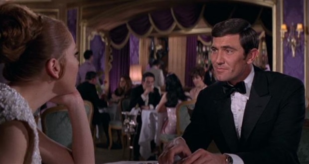 George Lazenby flirts with Diana Rigg. If only he was James Bond. |