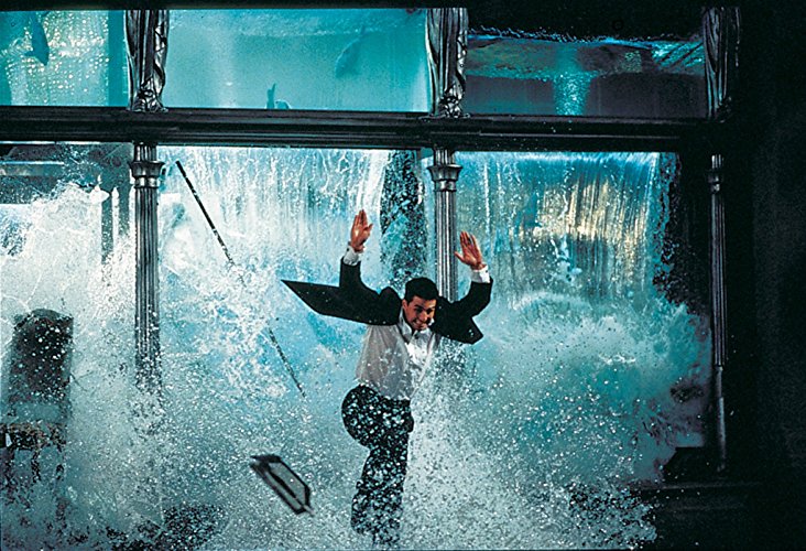 The scene also shows what a triumph of style this is. De Palma directs with a breezy lightness and love for the business of spycraft (I suspect he was taking the money big time, as he injects very little of his personality into it, but it works and he has an eye for the memorable shot), Tom Cruise is pretty damn cool. The film understands the simplicity of iconic shots – Cruise jumping away from an exploding aquarium in a restaurant is a simple stunt, but it looks great. The film has a great range of small-scale spycraft as well – from Cruise cracking a bulb and sprinkling the glass outside a door as an early warning detector, to him carefully timing how long to stay on a phone call to allow a trace to go so far.