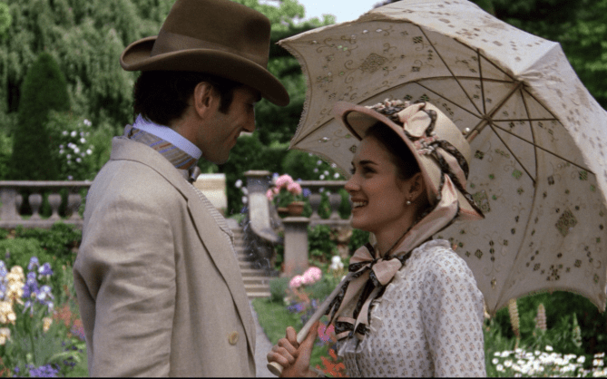 This marvellous construction – with its beautiful photography, inspiring design and costumes – contains a storyline of frustrated love, a love triangle between three people where the man has to make a choice between what he wants and what is expected of him. Newland Archer clearly loves Ellen in a way he can never love May – indeed, he is dismissively cruel in his thoughts towards May, who he clearly considers nothing more than an extension of the mindless gilded objects of beauty around him, a woman he sees as lacking an imagination or daring. In Ellen, he sees far more opportunities for a world of change, of difference, or being something he does not expect. She is far more of a free-spirit, a more bohemian figure, confident in herself and something far more modern than May, who is very much a product of her time and place.