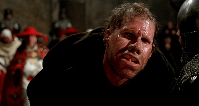 Annaud searched far-and-wide for his ideal cast to populate the monastery – and he seems to have assembled actors based on the closeness of their resemblance to Holbein, Bosch and Brugel grotesques. The monks are a distinctive set of oddball weirdos, often pale of face (non-more so than obese albino Beringar, whose effete campness tips a little uncomfortably into homophobia today), with oddly tonsued facial hair, and prominent facial features. To be honest it makes the movie-stardom of Connery (and Slater) stand out even more, as practically the only members of the cast who don’t look like they could audition for the Addams family. Ron Perlman in particular labours under such carefully applied make-up, matched with a faultlessly committed performance of physical and verbal childishness mixed with animal instinct, it was a shock to find out from other films that he was not hideously deformed!