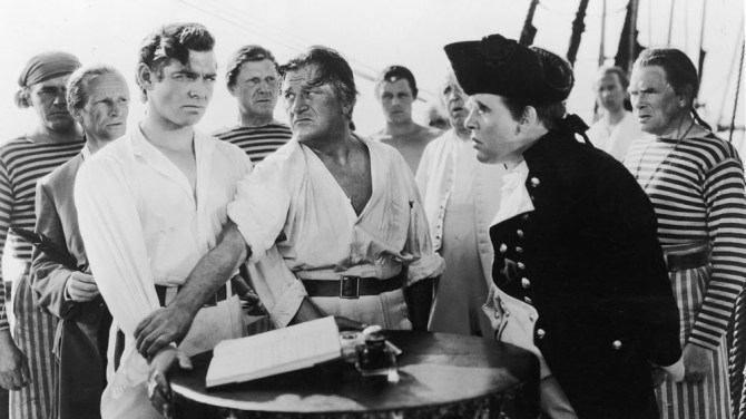 Between the two of them runs Franchot Tone’s Midshipman Roger Byam. Tone is the often forgotten third nominee for Best Actor, but he has in many ways the trickier part, which he handles with aplomb: the naïve young man who wants to serve his captain and his country, but also understands that his captain is not a man of justice. Tone gets the film’s highlight, a final speech to the court martial that helps make everything turn out alright, but his tortured pleading for justice and moral righteousness is delivered with a humble and effective forthrightness.