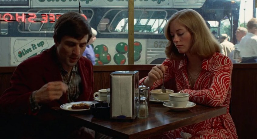 Bickle channels what human emotions he can muster or understand into ciphers he barely knows. These people become totems, or stalking targets, who he becomes persuaded must be “saved”. With Cybil Shepherd’s Betsy, the delusion is clear: here is a confident, career woman, independent and smart, for whom Bickle can feel an attraction but clearly no understanding at all beyond her being an object he cannot have. The awkwardness and later stunningly poor judgement and reactions he shows when around her mark him immediately as a weirdo and danger to others.