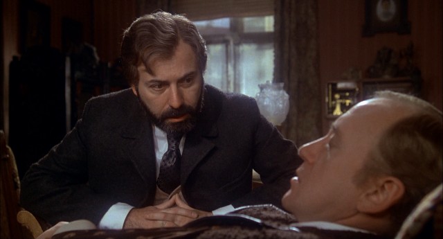 Bouncing off Williamson we have the traditional “Watson” role split between that character and Freud. Robert Duvall is a very unconventional choice as Watson – and his almost unbelievably plummy accent takes some getting used to – but he gives the character authority without (generously) giving him inspiration. Limping from a war wound (another touch of the novels often missed until now), he’s dependable, loyal and goes to huge lengths to protect his friends.