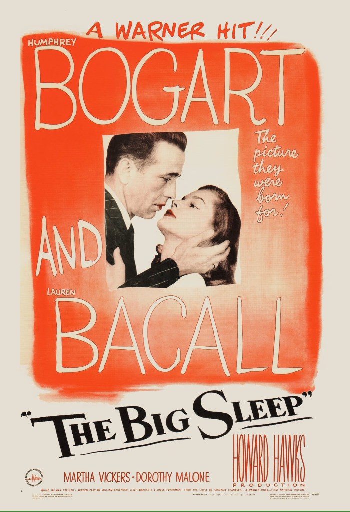 Cast: Humphrey Bogart (Philip Marlowe), Lauren Bacall (Vivian Sternwood Rutledge), John Ridgeley (Eddie Mars), Martha Vickers (Carmen Sternwood), Sonia Darrin (Agnes Lowzier), Dorothy Malone (Acme bookstore owner), Regis Toomey (Chief Inspector Bernie Ohls), Peggy Knudsen (Mona Mars), Charles Waldron (General Sternwood), Charles D Brown (Norris), Elisha Cook Jnr (Harry Jones)