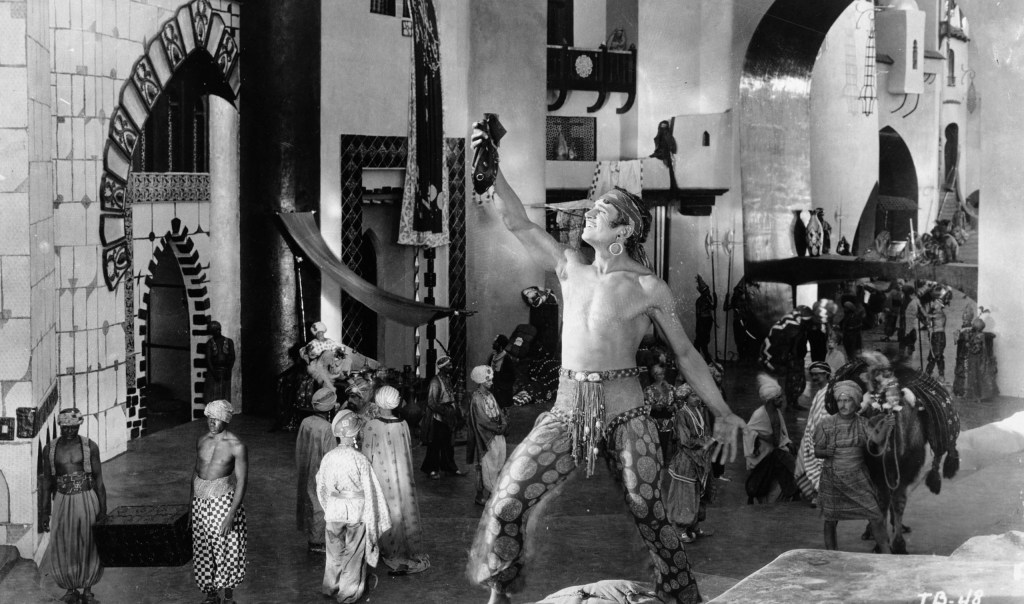 There are other dated moments – it’s hard not to imagine that no film today would have its lead character storm into a mosque and announce all its teaching bunkum – while a call to prayer sequence, obeyed by all mid-chase, is awkwardly played for comedy. Other parts must have looked silly at the time, not least Fairbanks’ awkward slow-motion walking when fighting under the sea (no idea how the thief breathes down there). But then you’ll get a daring climb of a giant statue or Fairbanks leaping on a horse and riding through some gorgeously filmed desert at breakneck speed and it’s all fine.