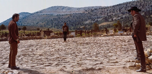 The plot of the film is very simple – considering its extended runtime. Three bandits and hired guns are on a quest for buried gold, while all around them the American Civil War rages. The bandits are: “The Good” (Clint Eastwood) – the taciturn “man with no name” who has more of heart than he lets on; “The Bad” (Lee Van Cleef) – known only as “Angel Eyes”, a stone-cold killer with no soul at all; and “The Ugly”, Tuco (Eli Wallach), a larger than life Mexican bandit, scruffy, scuzzy but with plenty of joie de vivre. The money is hidden somewhere out in a graveyard in the West – but who is going to get there first?