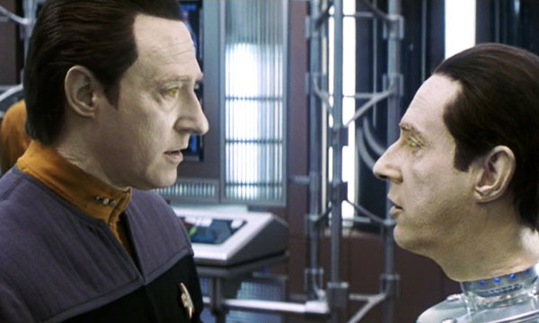 When action does kick-in, Jonathan Frakes does a decent job of directing it. Some of the Sierra Nevada-set action as Picard and his crew march the Ba’ku to the hills to prevent them being picked off the planet by the Son’a has a decent Western feel to it (including a Leone-homage series of frowning forehead shots). There is a decent space battle between the Enterprise – helmed by Riker – and the Son’a. I’ll even admit that the ridiculous “manual steering column” (essentially a joystick Riker uses to fly the Enterprise) is fairly entertaining. Like First Contact – and Nemesis would finally peak in this regard – the ending involves a Die Hard style smack-down between a trigger-happy, shirt-clad Picard and the villain on an utterly unconvincing set (which looks like they didn’t bother to finish the blue-screen work). But all this stuff never feels different from anything we’ve seen before.
