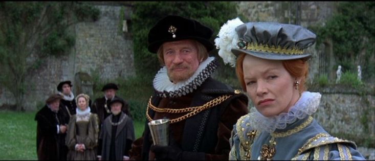 The rest of the cast is a familiar parade of character actors – British actors of this generation made a living from films like this! Timothy Dalton stands out as a foppish, clearly useless Darnley (here reimagined as a syphilitic bisexual with anger management issues), as does Ian Holm as a cool-headed, would-be power behind the throne David Riccio, who meets a tragic end. Daniel Massey does a decent job as Leicester (though I can’t shake memories of Robert Hardy in the same role in Elizabeth R – was he busy at the time?), Trevor Howard gets saddled with a lot of plot as Burghley. Up in Scotland, Patrick McGoohan has a lot of fun as a scheming Earl of Moray.
