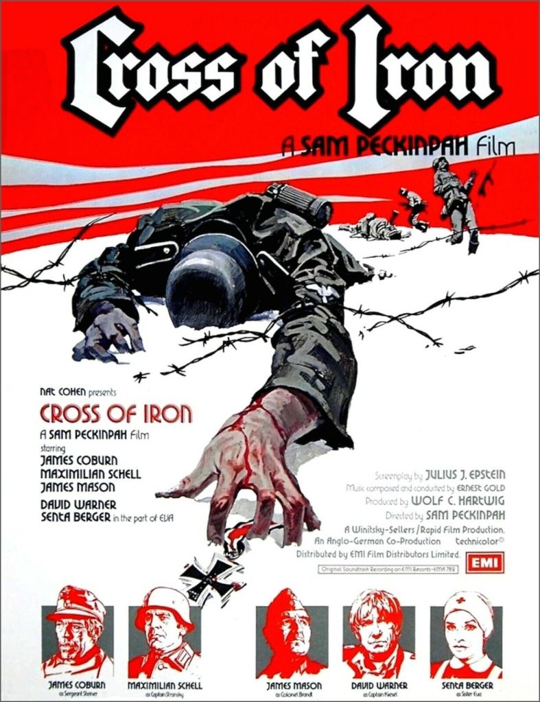Cast: James Coburn (Sergeant Rolf Steiner), Maximilian Schell (Captain Stransky), James Mason (Colonel Brandt), David Warner (Captain Kiesel), Klaus Löwitsch (Krüger), Vadim Glowna (Kern), Roger Fritz (Lt Triebig), Dieter Schidor (Anselm), Burkhard Driest (Maag), Fred Stillkrauth (Reisenauer), Michael Nowka (Dietz), Arthur Brauss (Zoll), Senta Berger (Eva)