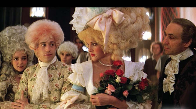 It’s pinpointed with a beautiful late scene, where a bed-ridden Mozart dictates his Requiem score to Salieri. Mozart is electric, precise, his thinking fast-paced, complete, his passion for the score all-consuming – with poor Salieri desperately trying to keep up (“You go to fast” he frequently whines). It’s a scene that captures completely the intensity of mining creation. (Hulce apparently deliberately skipped lines during the scene, to add to Abraham’s confusion in the scene – with Abraham’s later agreement!). Its part of what the film beautifully captures, how being able to bring your ideas, perfectly formed, into the world is the most enchanting drug of all.