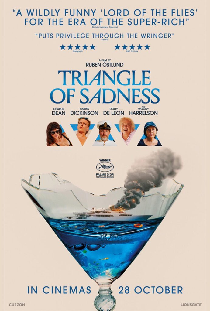 Cast: Harris Dickinson (Carl), Charlbi Dean (Yaya), Dolly de Leon (Abigail), Zlatko Burić (Dimitry), Iris Berben (Therese), Vicki Berlin (Paula), Henrik Dorsin (Jarmo), Woody Harrelson (Captain Thomas Smith), Alicia Eriksson (Alicia), Jean-Christophe Folly (Nelson), Amanda Walker (Clementine), Oliver Ford Davies (Winston), Sunnyi Melles (Vera)